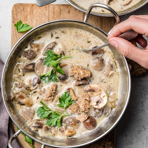 • In a large pot, sauté onions, garlic and mushrooms in a little bit of oil over medium-high heat until onions are translucent.